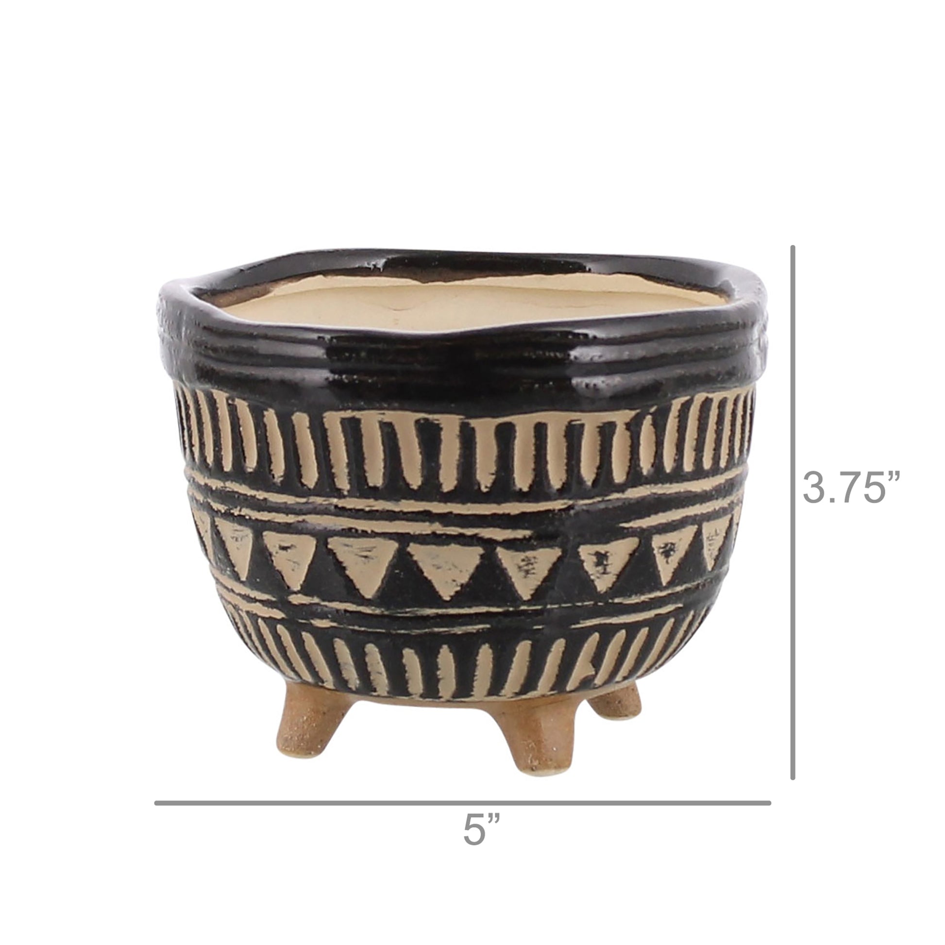Hand painted bowls/vases. Black with natural symbolic drawings. Can be used as a plant pot or decorative vases. Available in small and large. Add ethnic flair to any space.