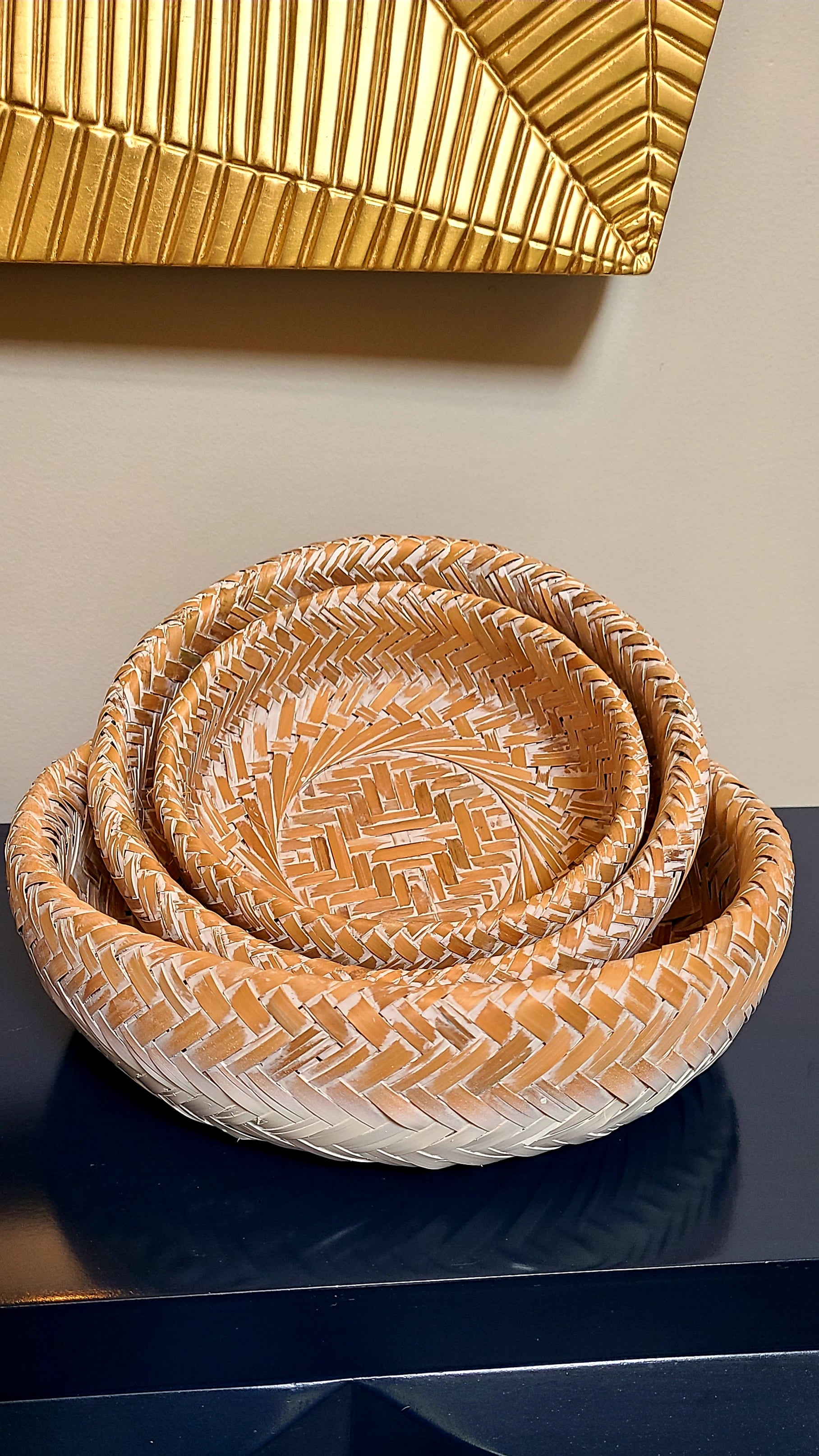Natural & White Decorative Bamboo Baskets (Set of 3)